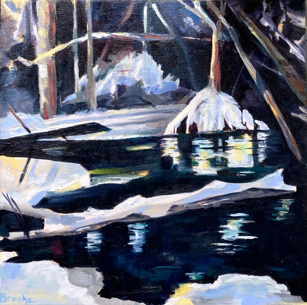 Dancing in the Dark 20 x 20 oil on canvas $585Passage # 1 18 x 14 oil on canvas $365Traversing Edges. 12 x 12 oil on canvas $325December 12 x 12 oil on canvas SoldRiver Crossings 12 x 12 oil on canvas $325Aquarian Concert 18 x 24 oil on canvas $485Peacemaker 20 x 20 acrylic and collage on wood panel $465